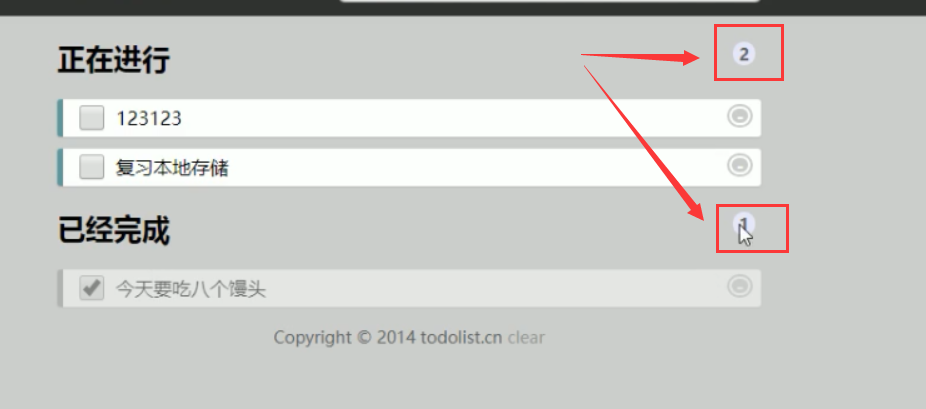 ## 5.案例: toDoList**统计**正在进行个数和已经**完成个数**