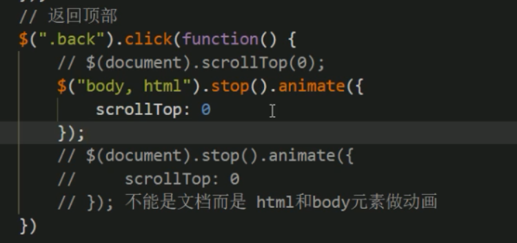 ③但是是元素做动画,因此$( "body,html" ).animate({scrolITop: 0})