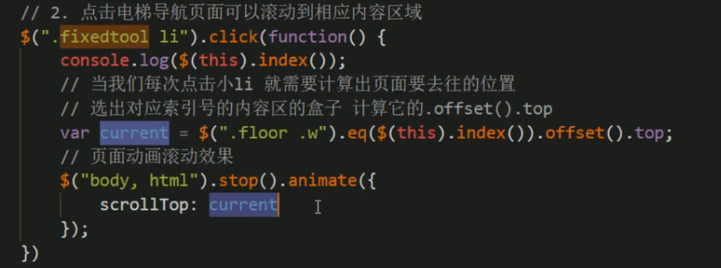 3.当前页面滚动 ,电梯导航也跟着发生变化