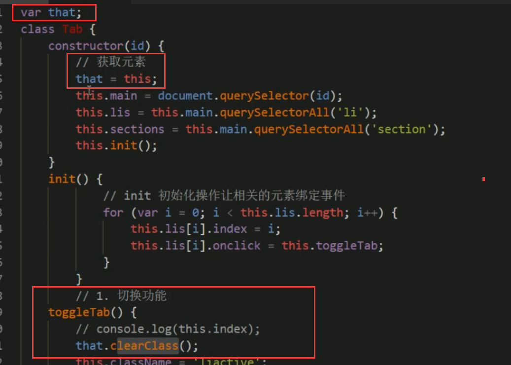 2.类里面的共有属性和方法一定要加this使用.