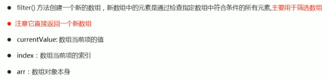 迭代(遍历)方法: forEach()、map()、**filter()**、some()、every() ;