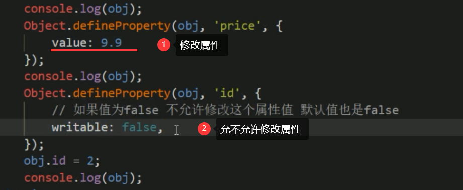 2.Object.defineProperty() 定义对象中新属性或修改原有的属性。