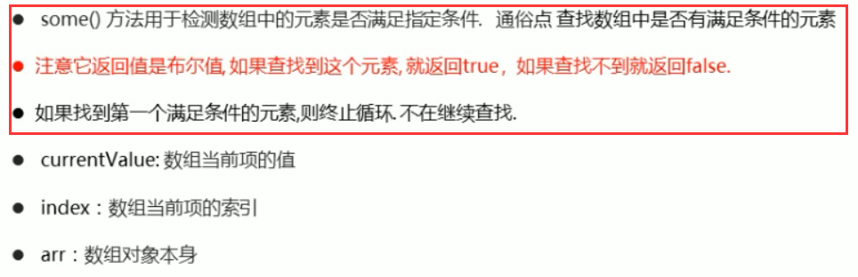 ### some(). (**查找**函数**是否有满足条件的函数**)(返回布尔值)