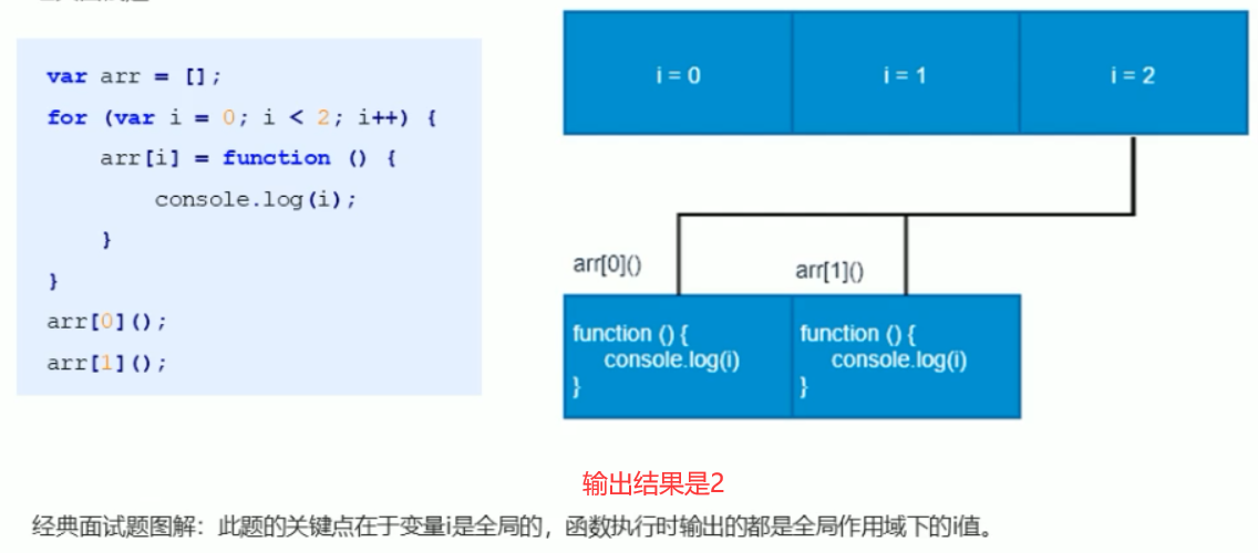 var 循环体结束才调用 2不满足,跳出循环体,然后,调用函数,输出是2