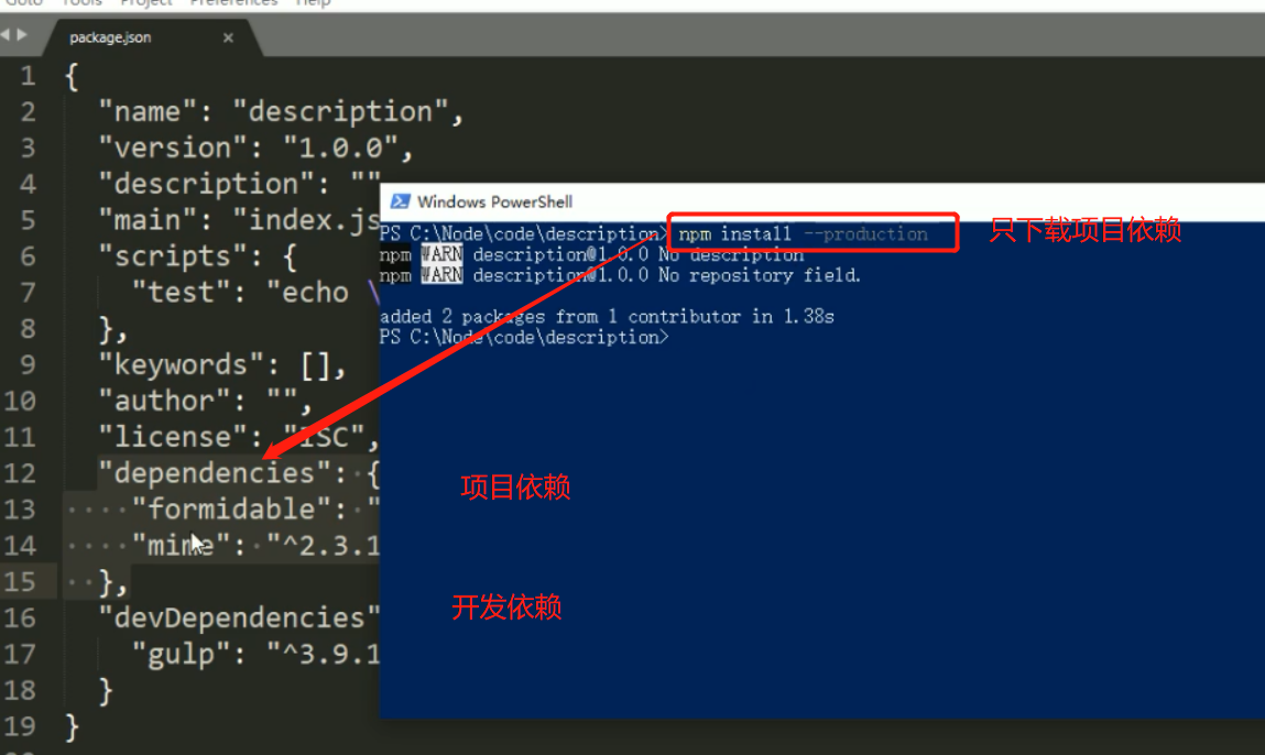 ●使用npm install包名命令下载的文件会默认被添加到package.json文件的dependencies字段中