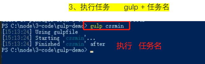 3、运行 gulp + (gulpfile.js文件里的创建任务的任务名)