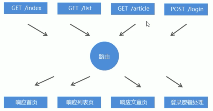 路由是指客户端请求地址与服务器端程序代码的对应关系。简单的说,就是**请求什么响应什么**。