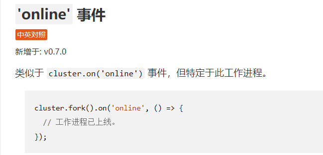 [cluster 集群 | Node.js API 文档 (nodejs.cn)](http://nodejs.cn/api/cluster.html#cluster_event_online)