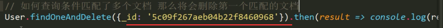 User.find({_ id: ' 5c09f267aeb04b22f8460968 }).then(result => console . log(result))