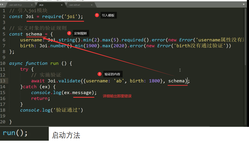 username: Joi. string() . alphanum() .min(3) .max(30) . required() .error (new Error(错误信息' ),