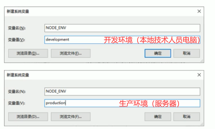 通过电脑操作系统中的系统环境变量区分当前是开发环境还是生产环境。
