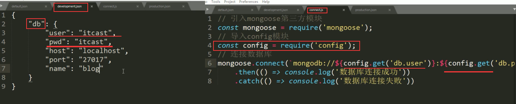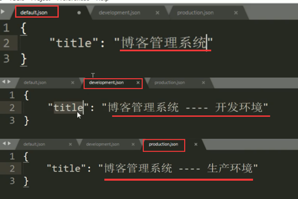 3.在config文件夹 下面新建defalt.json. development.json. production.json文件