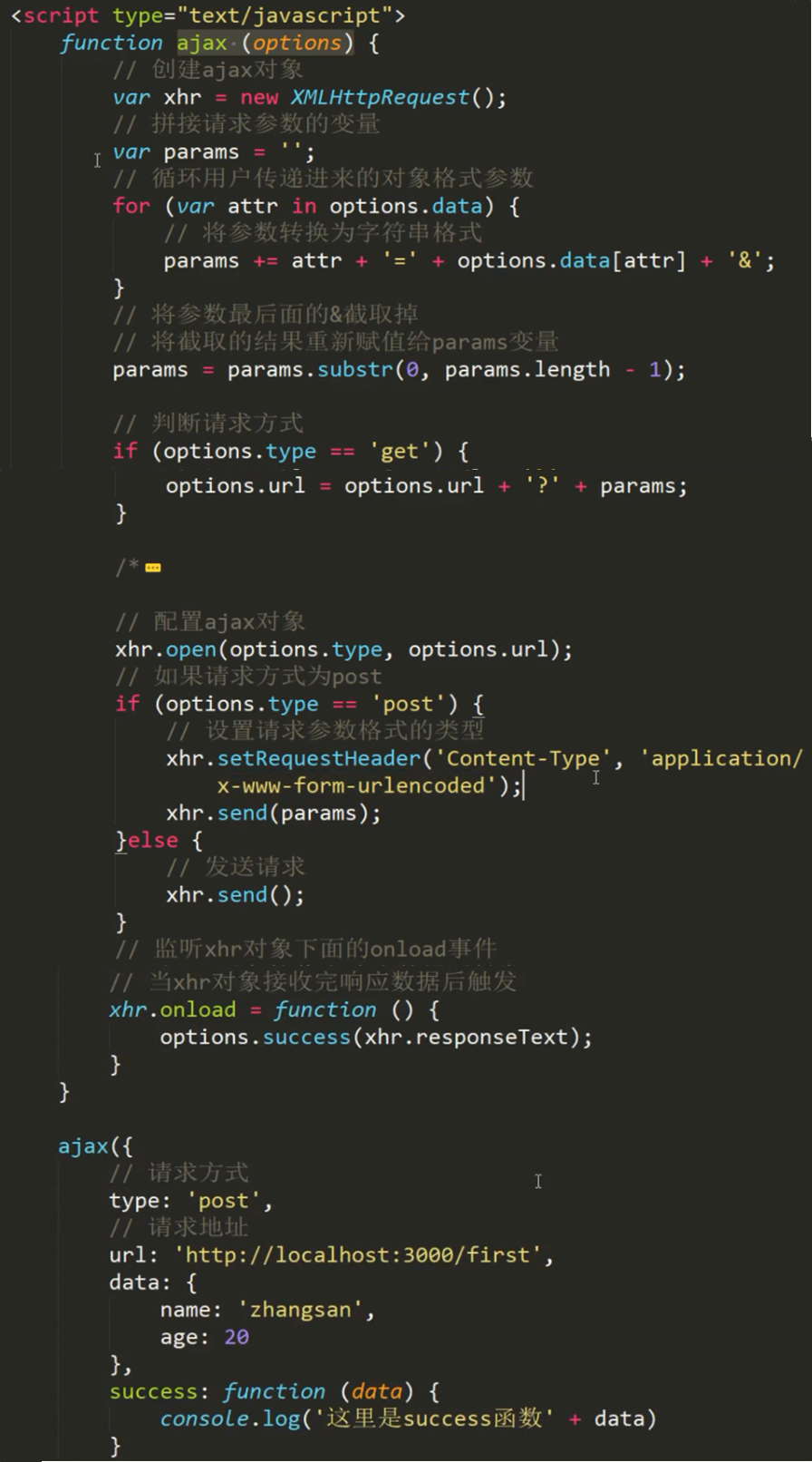 将请求参数传递到ajax函数内部,在函数内部根据请求方式的不同将请求参数放置在不同的位置