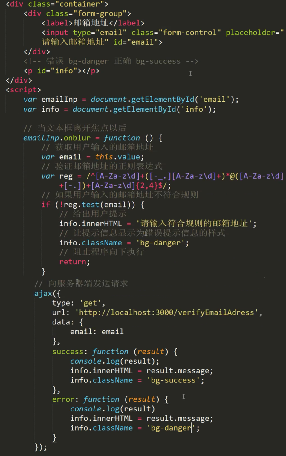 2.离开焦点时,检测用户输入的邮箱地址是否符合规则