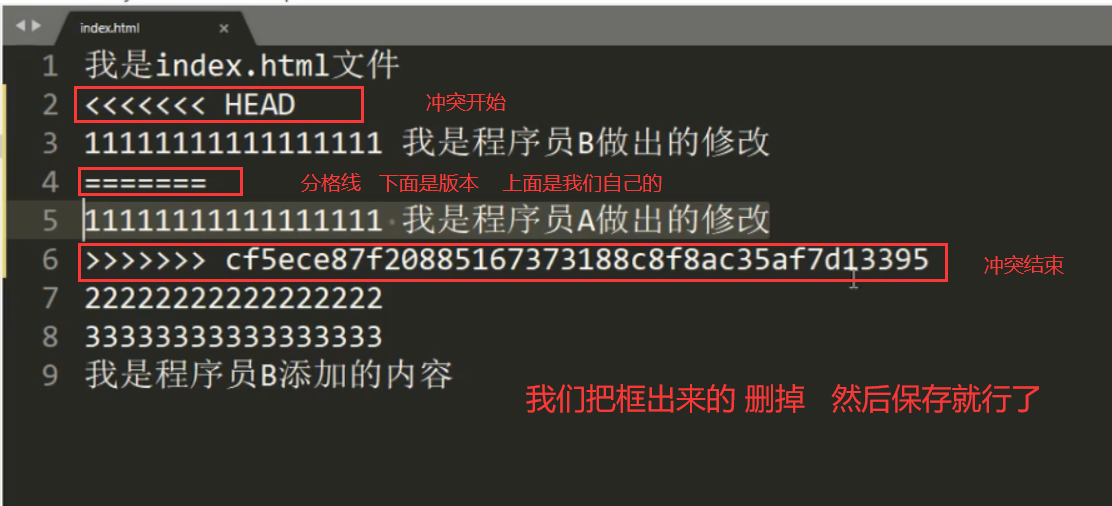 在多人同时开发一 个项目时,如果两个人修改了同一个文件的同一个地方,就会发生冲突。冲突需要人为解决。