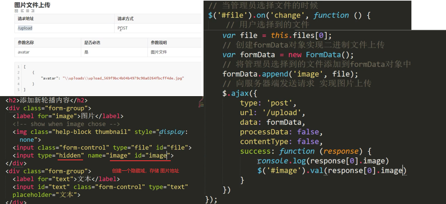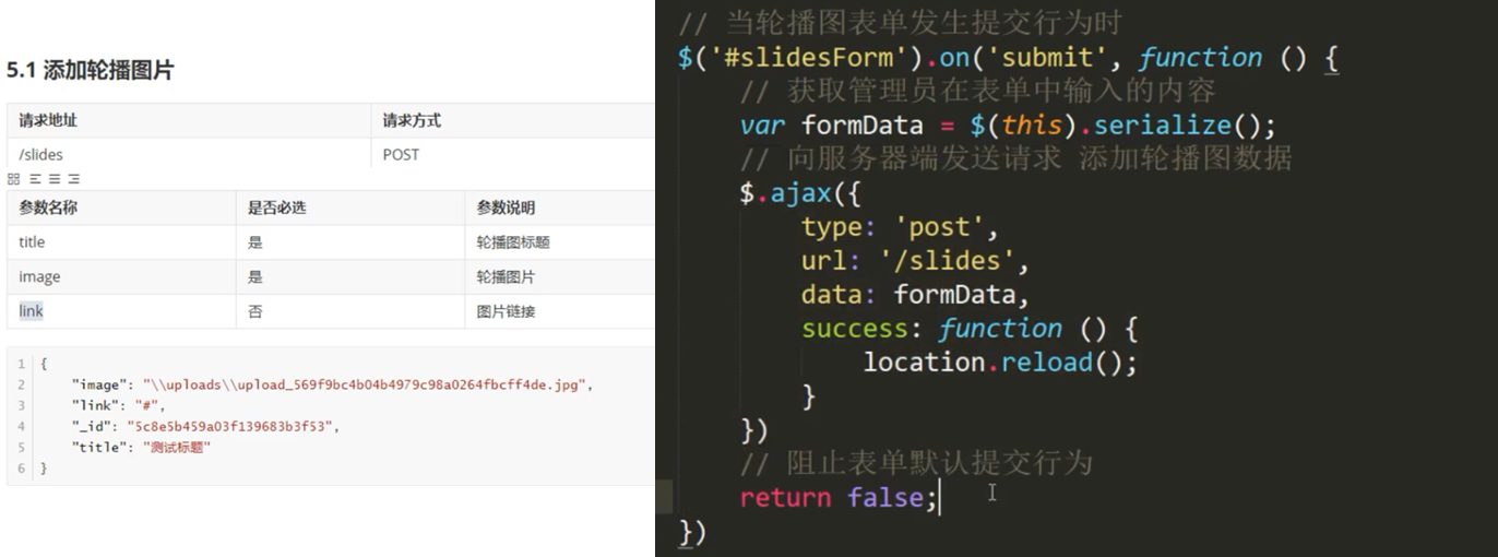 左边添加轮播图接口 右边js 轮播图表单提交 js