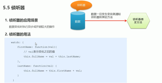 * [1.侦听器的应用场景](https://www.kancloud.cn/zheng1234/vuejs/2393768#1_4)