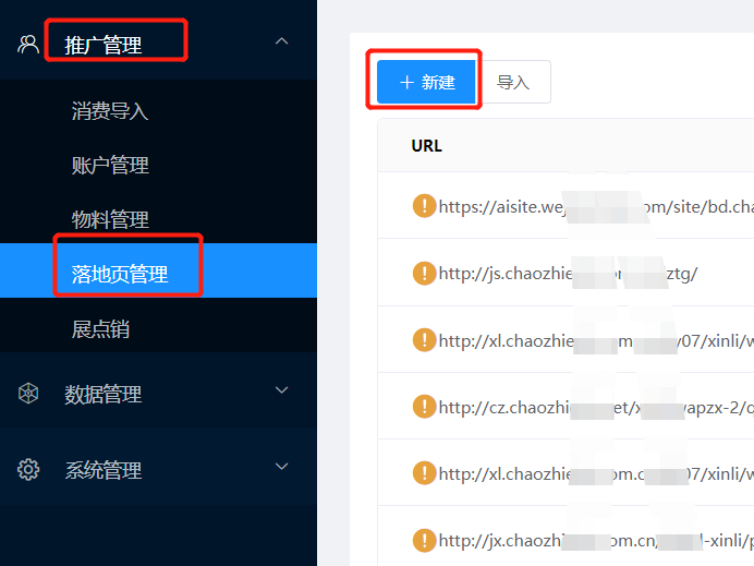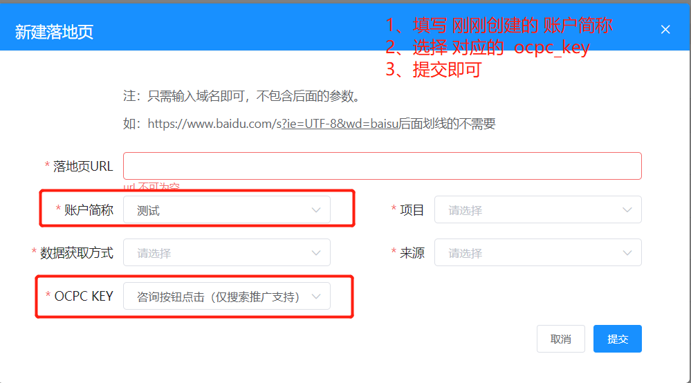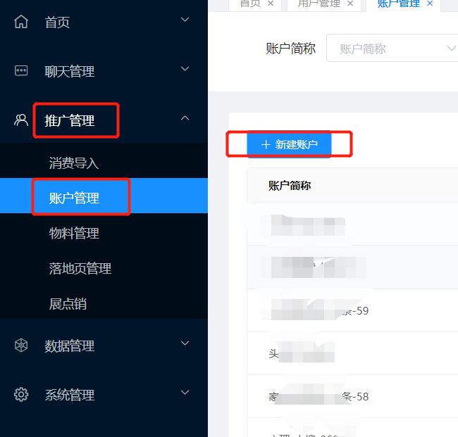 #### 步骤五:在我们自己的推广后台-新增账户、落地页