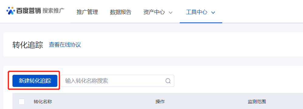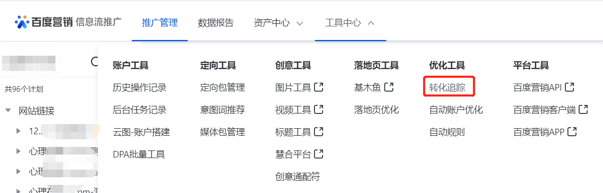 #### 步骤一:登陆广告主后台(工具中心-转化跟踪)