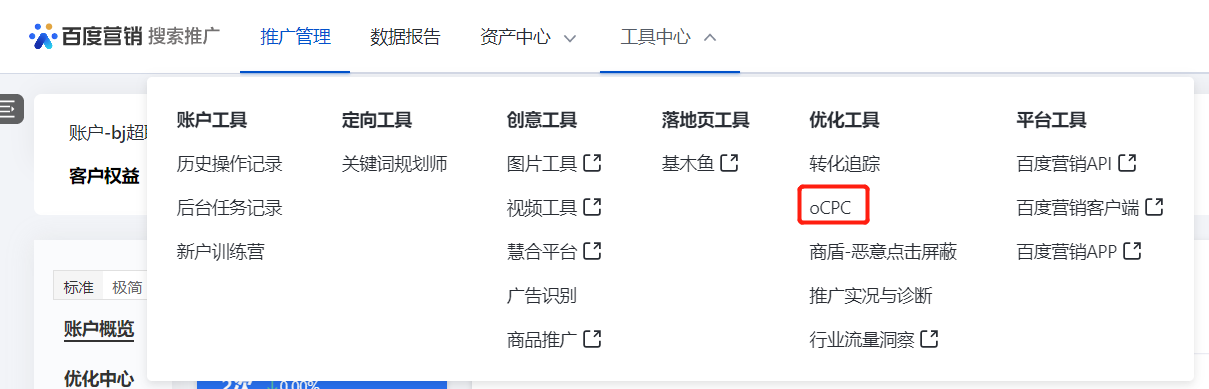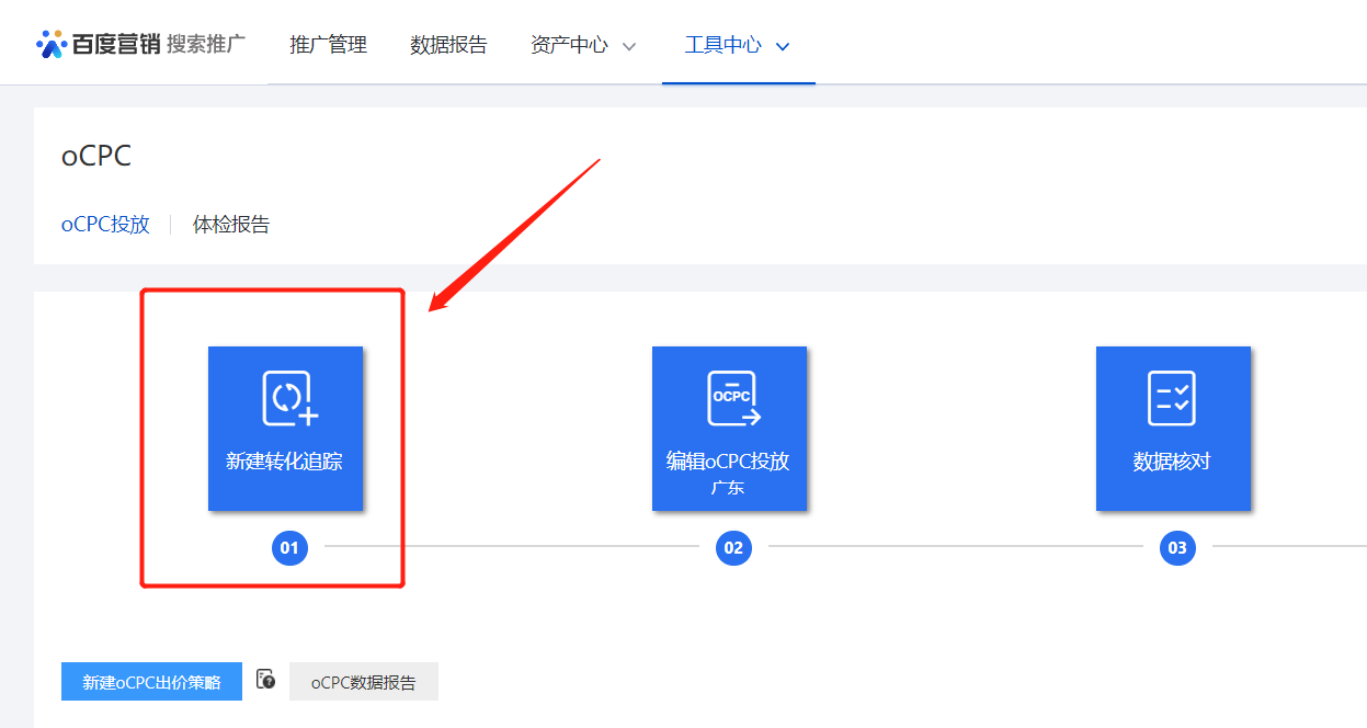 #### 步骤一:登陆广告主后台(工具中心-优化工具 ocpc)