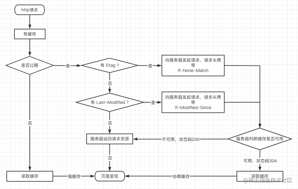 * 服务器判断缓存资源是否和服务端资源一样(一致返回 304,否则返回 200 和最新的资源)