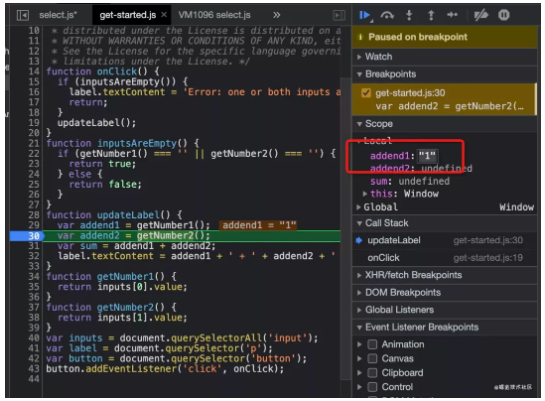 #### 断点,断浏览器的行为(比如 click、mouse 等等)
