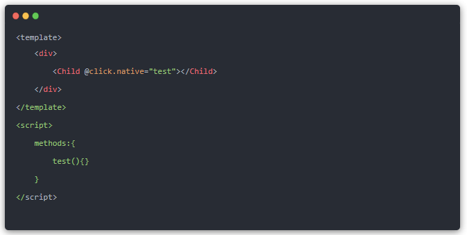 因为这样写vue会认为,你自定义了一个click事件,要在子组件通过$emit('click')触发才行。如果我就是要在父组件触发呢?那就要用到native修饰符了。