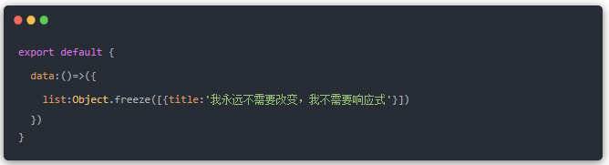 应该所有同学都知道,vue初始化的时候会将data里面的数据都搞成响应式数据吧。但是,我们在写业务逻辑的时候会有些数据一初始化就永远不会改变,它根本就不需要被vue做成响应式数据,因此我们应该将这些不用改变的数据通过Object.freeze方法冻结它,避免vue初始化的时候,做一些无用的操作。