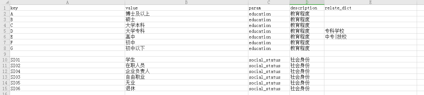 1.先从文档中复制字典信息到excel中,生成如图效果:
