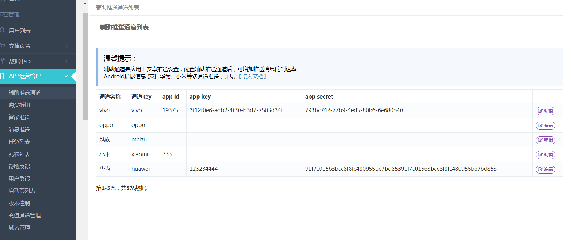 >[info]辅助通道是应用于安卓推送设置,配置辅助推送通道后,可增加推送消息的到达率