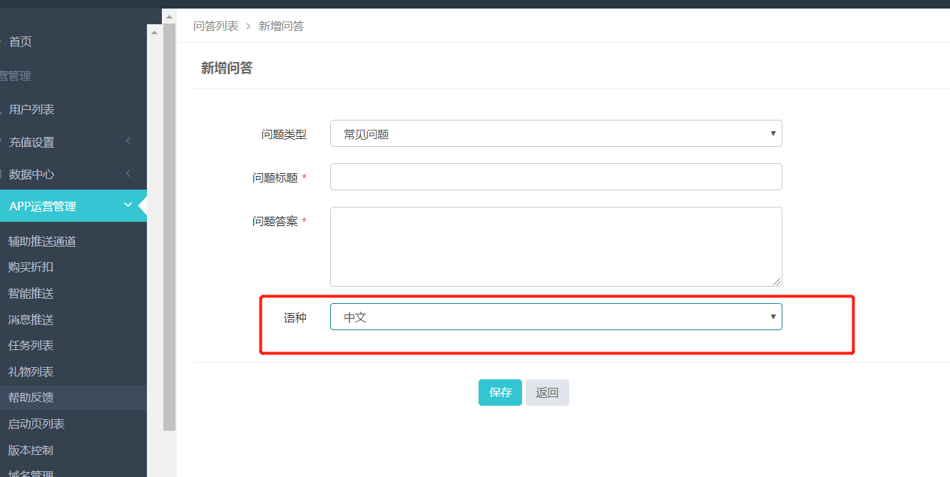 * [ ] 在前端,我的-意见反馈里展示,主要为用户解答一些常见的问题,可编辑、新增和删除。创建时需要选择对应的语种