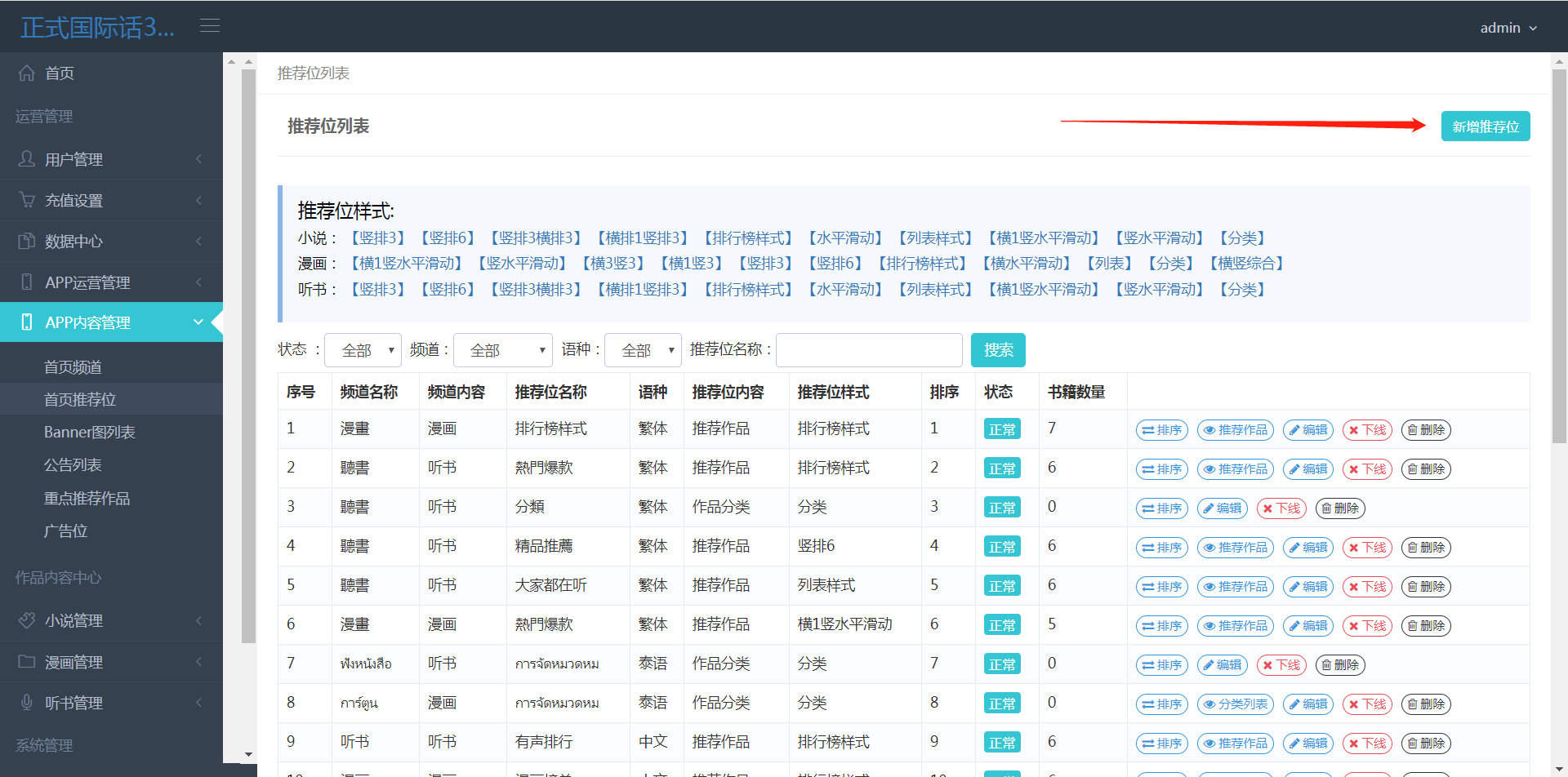 6)状态:正常(在前端正常显示)下架(前端不显示该推荐位)