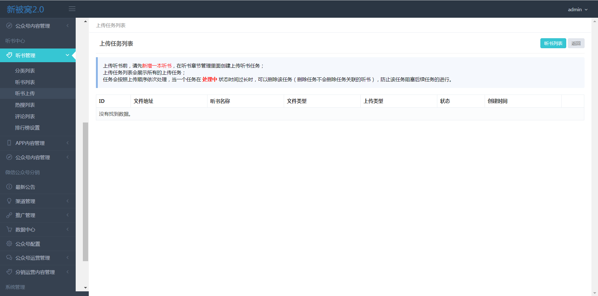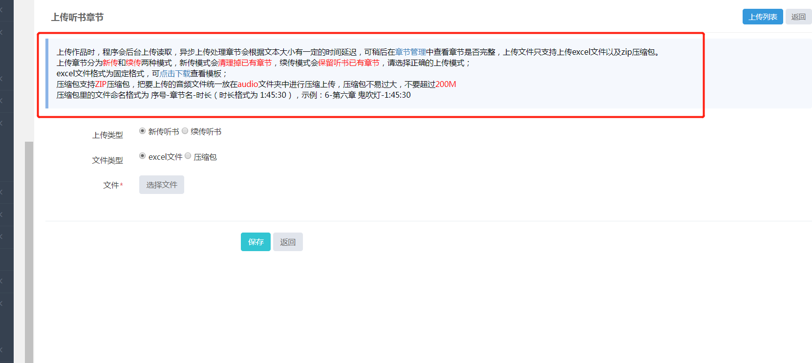 1)上传听书前,请先新增一本听书