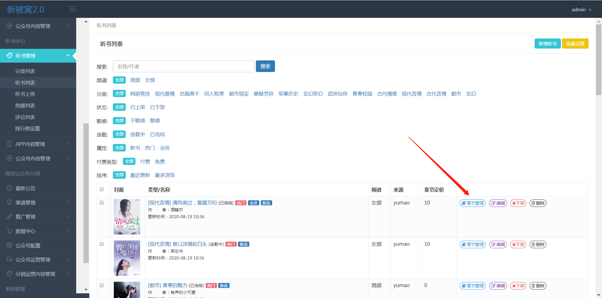 2) 点击章节管理