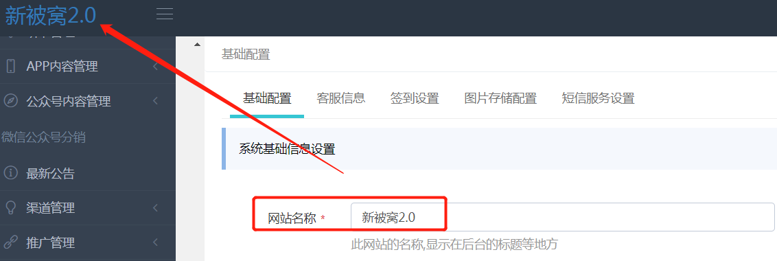* [ ] 网站名称:在后台左上角显示