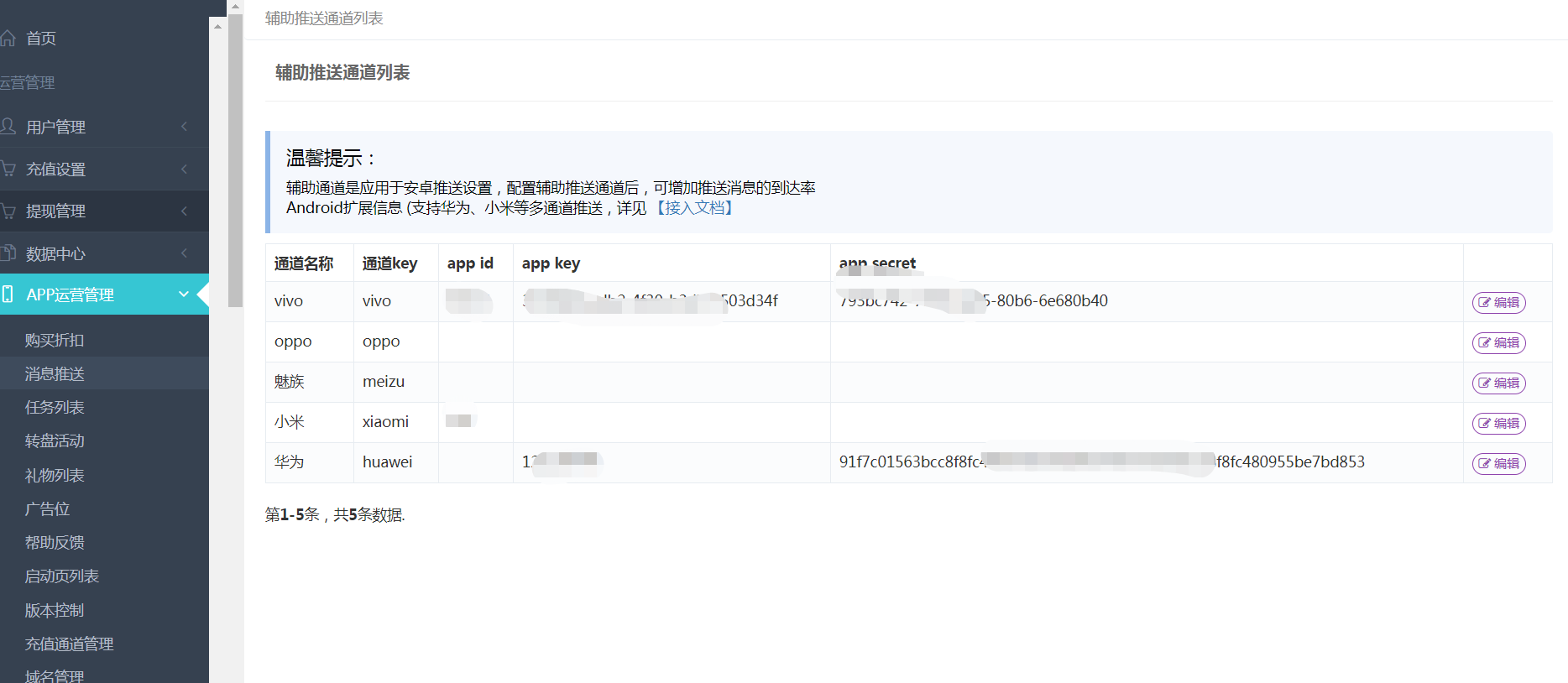 >[info]辅助推送通道:辅助通道是应用于安卓推送设置,配置辅助推送通道后,可增加推送消息的到达率