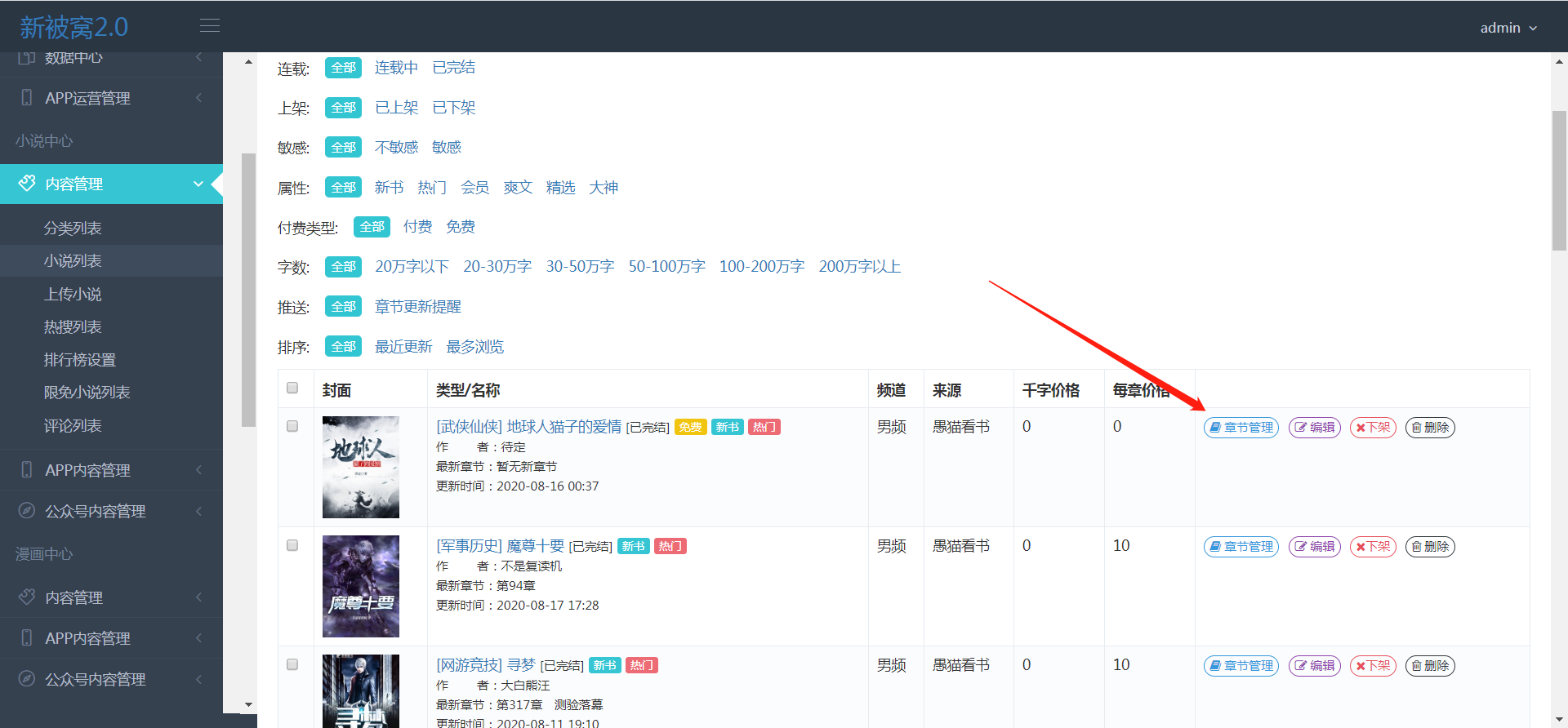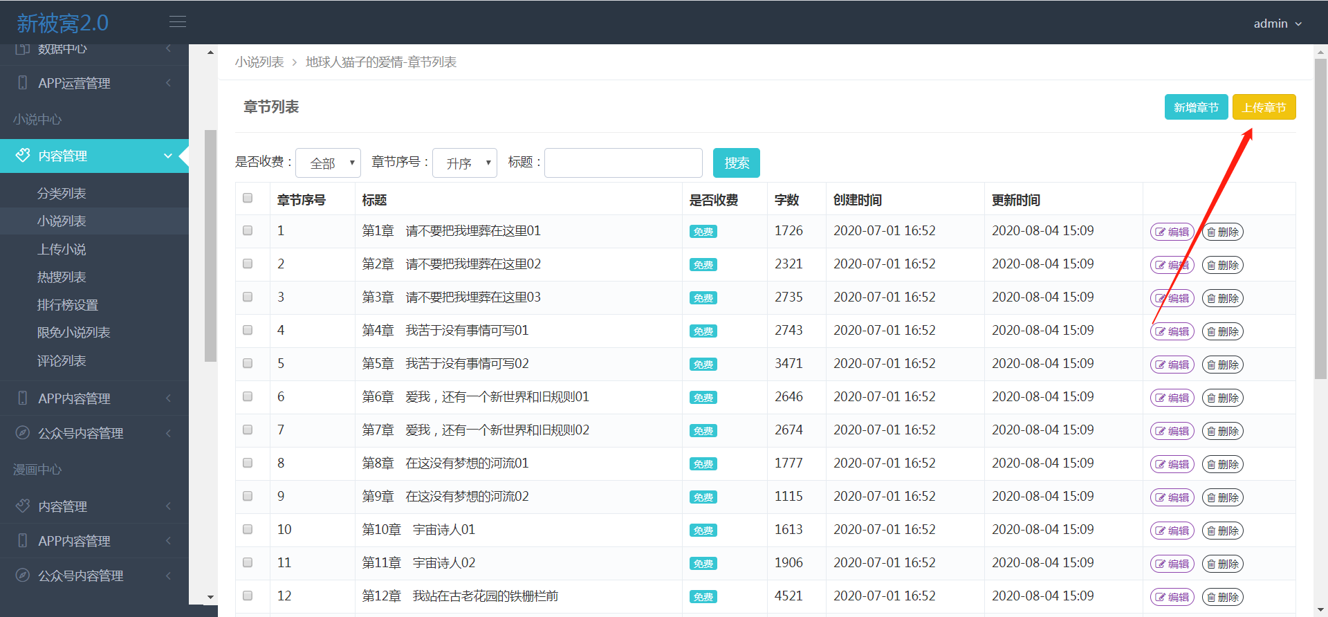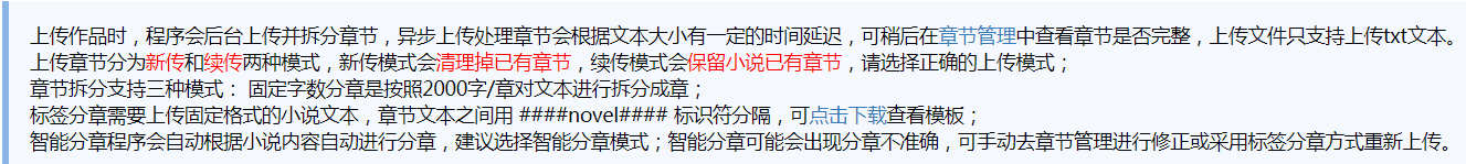 >[info]上传小说前,请先新增一本小说,在小说章节管理里面创建上传小说任务;