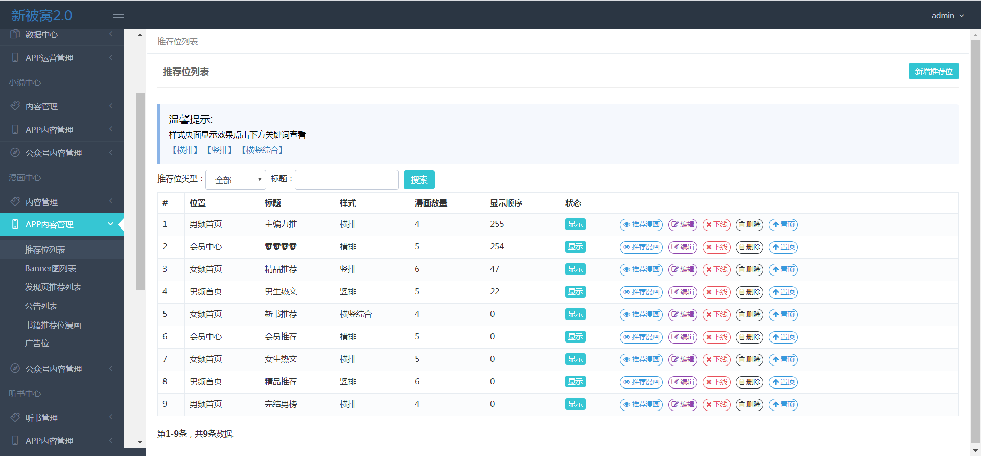 - 推荐位列表