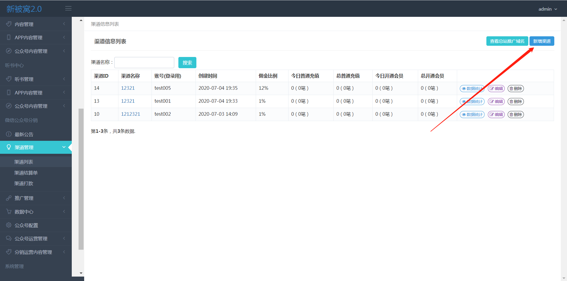 查看总站下面的所有二级渠道。总站无法查看渠道下面的代理,需要登录渠道后台来查看;