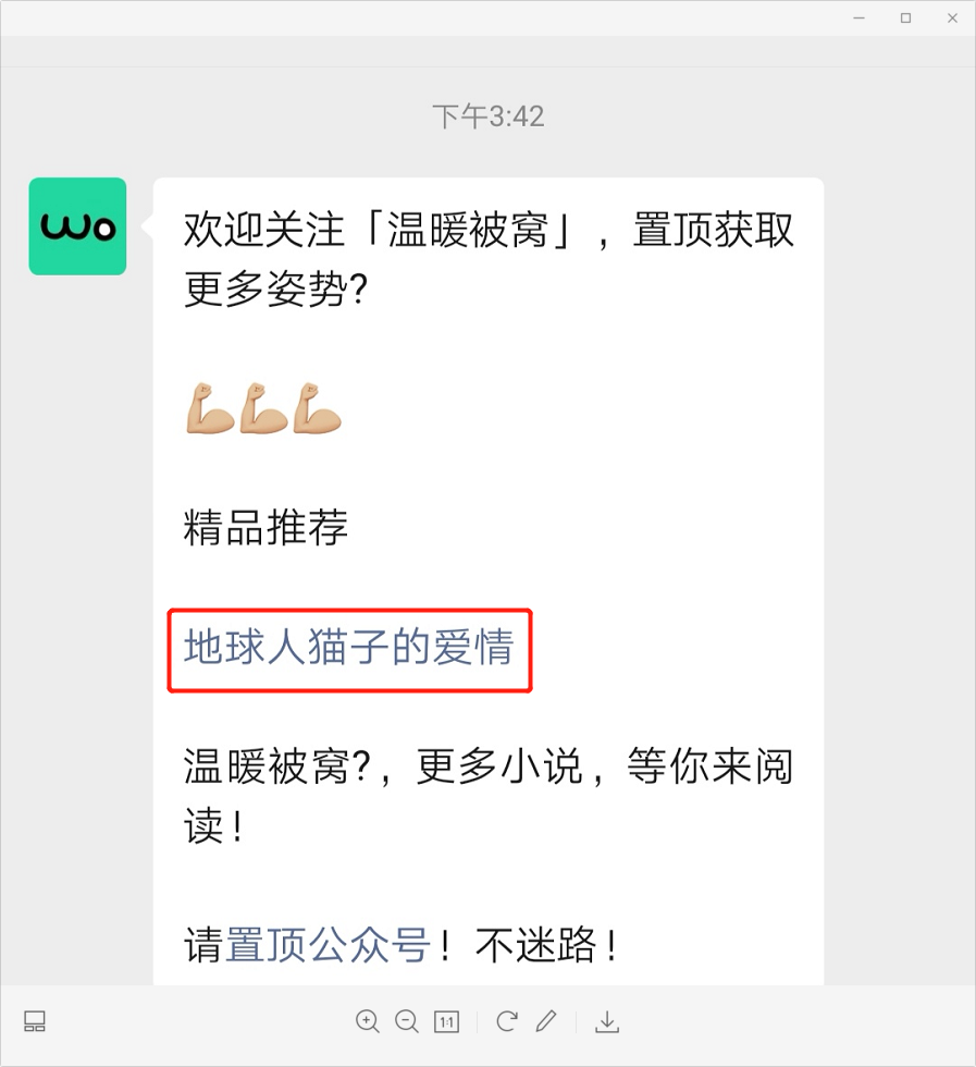 5、设置后小说的字体是蓝色的说明设置成功,或者重新关注一下公众号,看看关注文案的推荐能否点击