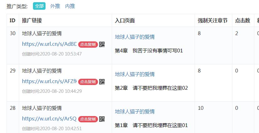 1、在推广管理生成要推荐书籍的推广链接,复制该链接