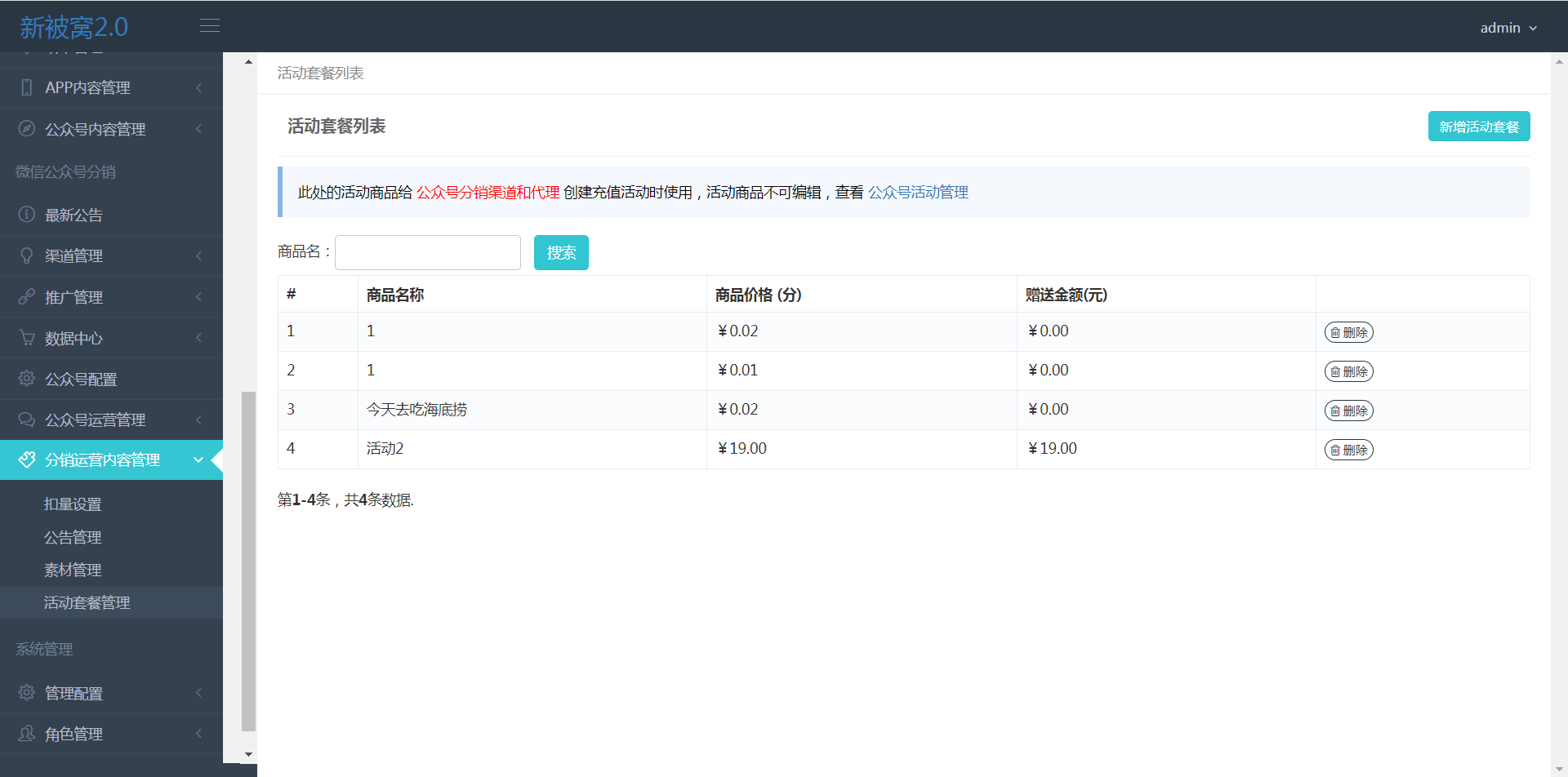 - 活动套餐管理