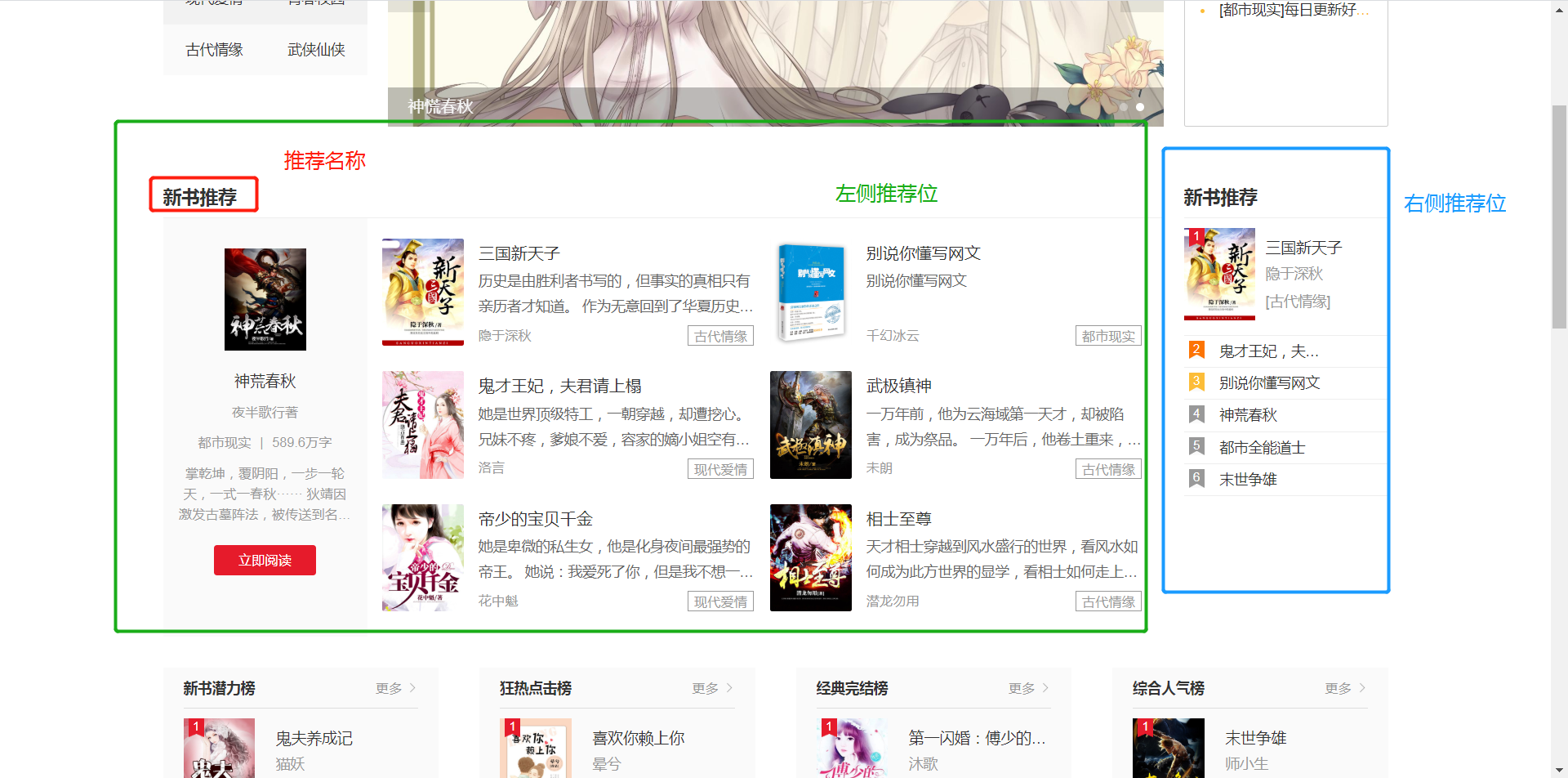 1)推荐位名称:推荐位名称会在推荐书籍上方显示