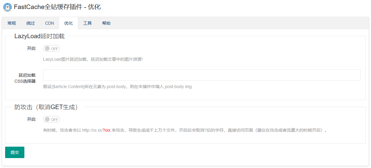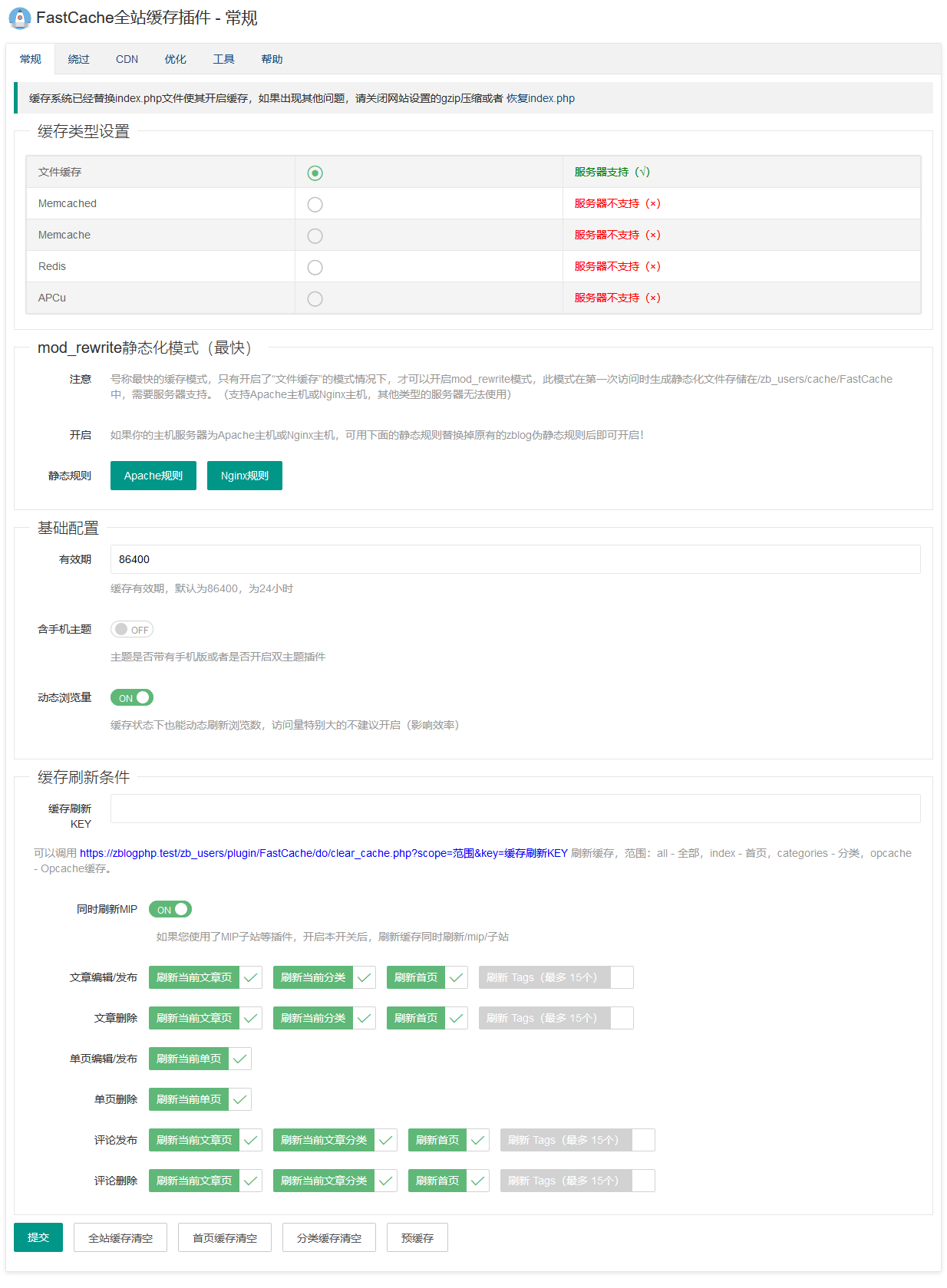 FastCache插件使用现代化的PHP缓存技术,整合多种缓存类型,支持mod\_rewrite静态化缓存。在页面第一次被访问时即生成缓存文件,后台可设置缓存更新周期,当缓存过期时重新更新缓存内容,后台也可设置部分用户不缓存,开启mod\_rewrite静态模式后效果更加棒。非常适合访问量大而交互方式多的网站。