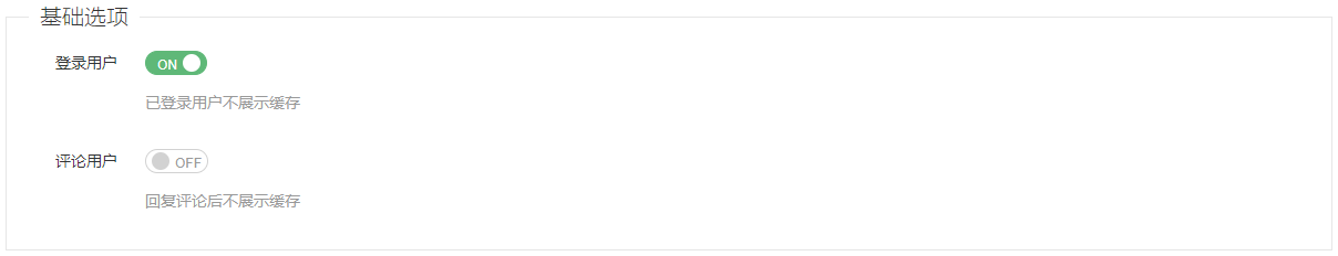 回复评论的用户不展示缓存。此选项自行斟酌是否开启,若 `缓存刷新条件` 中设置了评论后刷新文章页缓存的话,此处可以不开启。