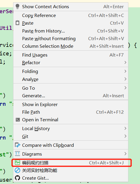 3. 右键选择:编码规约扫描,可扫描整个类
