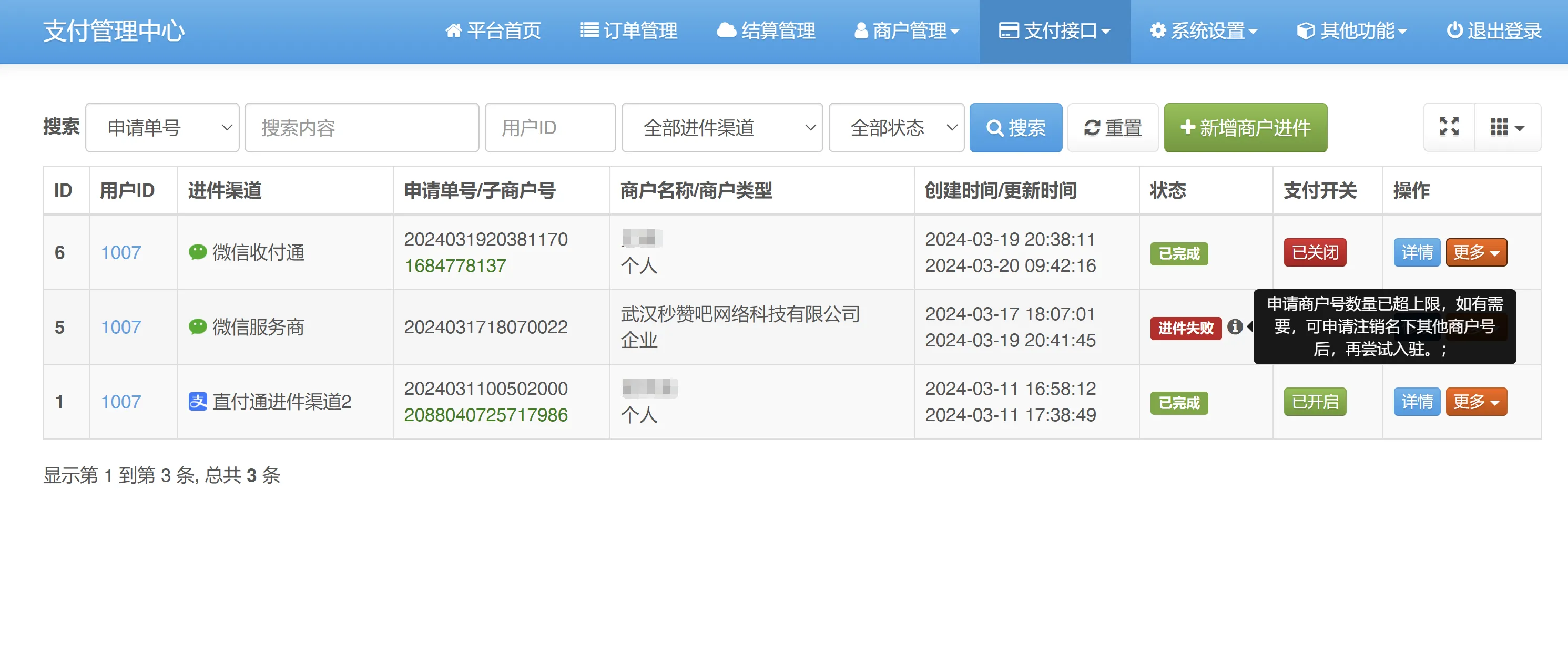 管理员后台进件商户管理