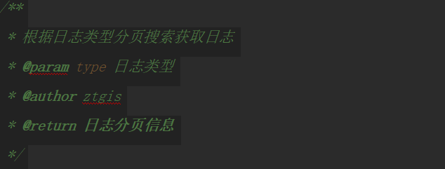 * 字段注释:注释位于行前,行后不能添加注释,当需要使用中文简拼作为变量名时必须给出注释,定义为public的字段必需给出注释,在类的(静态)变量、实例变量定义之前当对其进行注释,给出该字段的描述等: