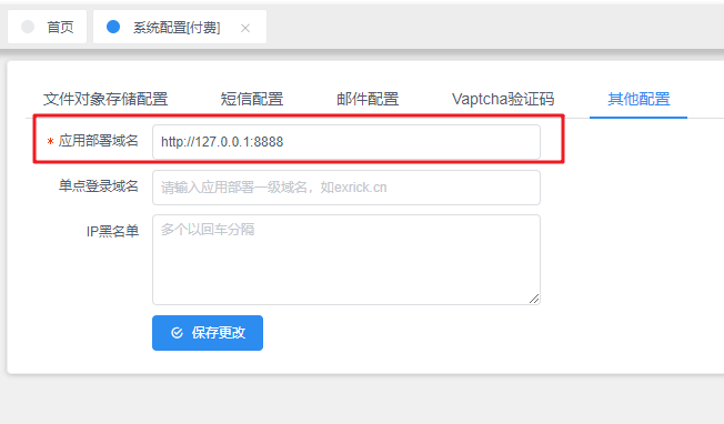 在 **【系统管理】-【系统配置】-【其他配置】** 中配置应用部署域名。