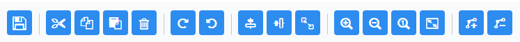 【保存】、【剪切】、【复制】、【粘贴】、【删除】、【重复】、【撤销】、【垂直对齐】、【水平对齐】、【相同大小】、【放大】、【缩小】、【实际大小】、【适应屏幕】、【为选定的流程连线添加弯曲点】、【为选定的流程连线删除弯曲点】。
